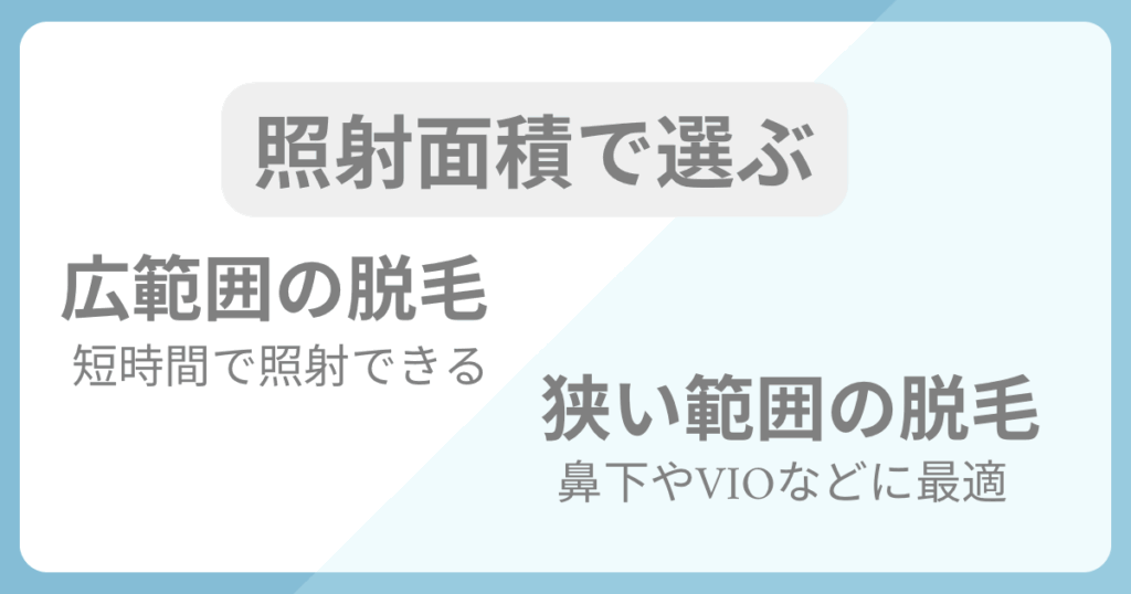 自分が脱毛したい部位の広さによって、照射面積が広いものか狭いものかを選びましょう。