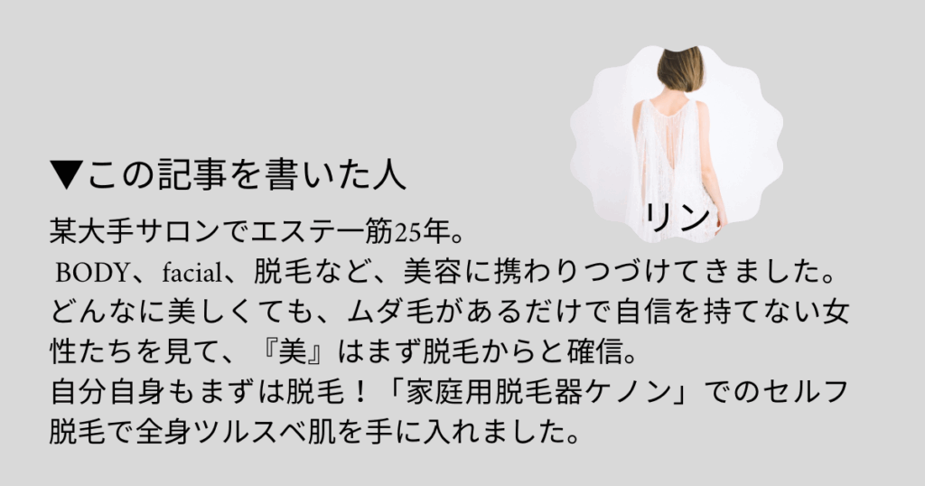 私は全身脱毛をコスパ良く行いたかったのでケノンを選びました。