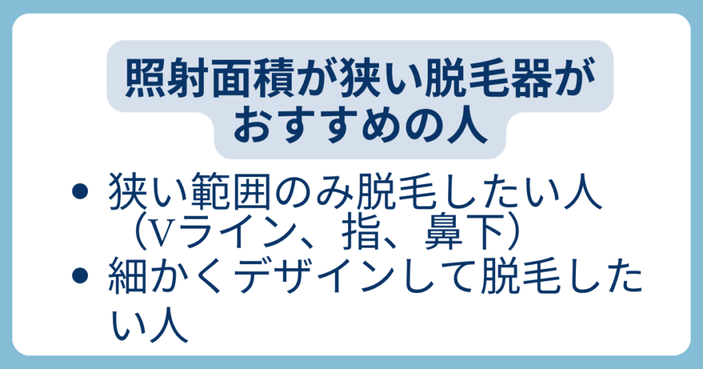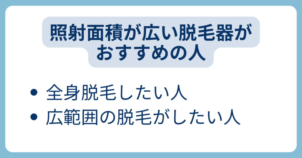 全身脱毛をしたい人には「照射面積が広い脱毛器」、狭い範囲を脱毛したい人には「照射面積が狭い脱毛器」がおすすめ!