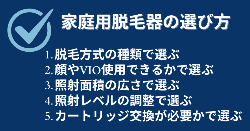 この記事では、家庭用脱毛器の選び方を5つのポイントに分けてご紹介します。